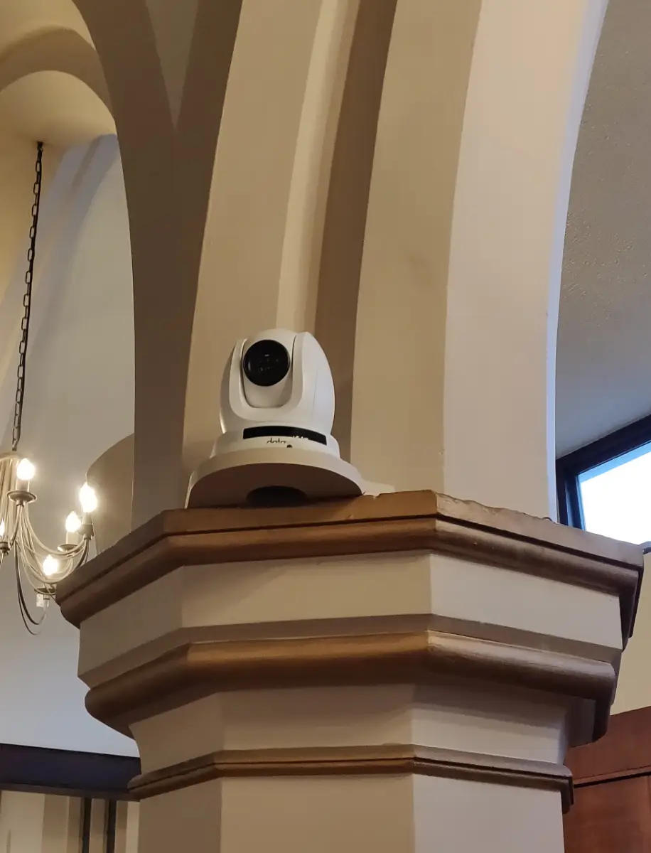 Flexible, future-proof AV solution. The new speech and music system provides consistent, high-quality audio coverage throughout the building, while the PTZ camera enables reliable streaming for those unable to attend in person. Day-to-day operation is kept simple for volunteers, while the system has the flexibility and power to handle larger services, concerts, and community events.