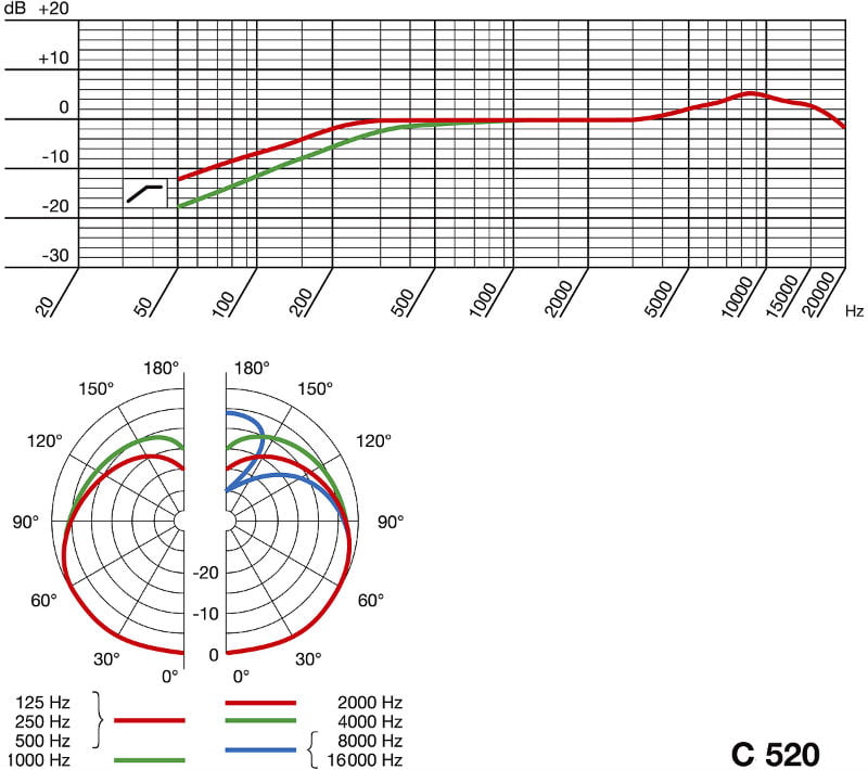 The AKG C520 is an ideal choice for frontmen, singing keyboardists, drummers, guitarists, and dancers. The microphone arm mounts either on the left or right side of the headband as desired. Its cardioid polar pattern effectively rejects unwanted ambient noise. The C 520 provides the perfect solution for any performer needing a handsfree microphone. A transducer shock mount reduces handling noise to a minimum. The moisture shield prevents perspiration from penetrating into the transducer element, ensuring a high degree of humidity protection for the microphone. The C 520 is a condenser microphone and therefore needs a power supply. It can be powered with external 9 to 52 V universal phantom power. This version includes a useful switchable bass rolloff (-4 dB at 100 Hz) on the XLR connector body.