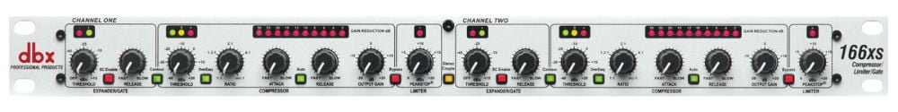 dbx knows compressors…after all we invented them! The 166xs is the latest in a long line of the world’s most successful compressors from the inventors of the technology. Its patented Overeasy® compression technology provides smooth and musical performance while the AutoDynamic™ attack and release controls, found only on dbx compressors, puts great sound within easy reach. The 166xs can operate in stereo or dual-mono modes, has true RMS power summing and features quality XLR and 1/4″ TRS inputs and outputs. It cuts no corners on visual feedback with gain reduction metering and easy-to-read backlit switches.