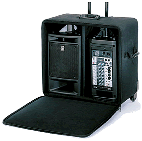 The Yamaha STAGEPAS 400i is a great portable PA system that delivers quality sound for small gigs. The Rollercase is a soft rolling carry case that holds your entire STAGEPAS 400i portable PA with padded protection and a convenient handle. Now your PA can now be as easy to transport as a small combo amp!